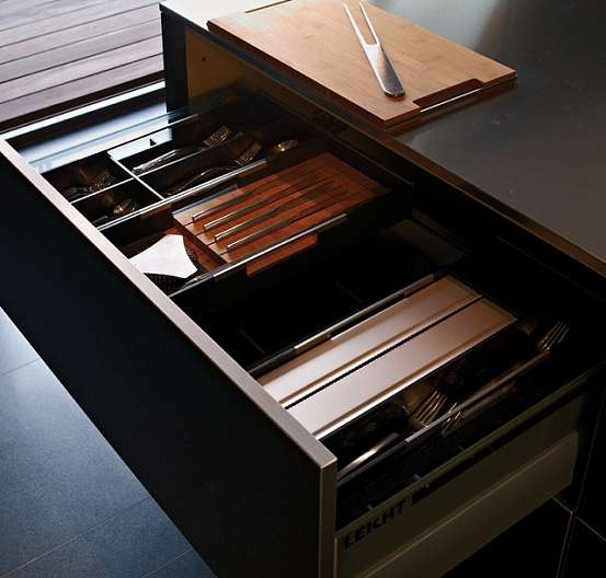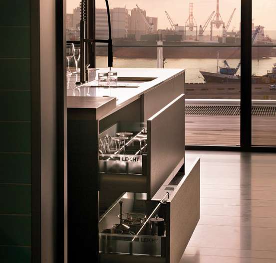Известные архитекторы уделяют особое внимание проектированию таких комплексов. Компания LEICHT занимается разработкой подобных проектов уже не первый год. Архитектурные кухни LEICHT - это объект, в котором техника умело интегрирована в мебель, и вместе они образуют целую комнату. Такая кухня может выполнять функции столовой и жилой комнаты.