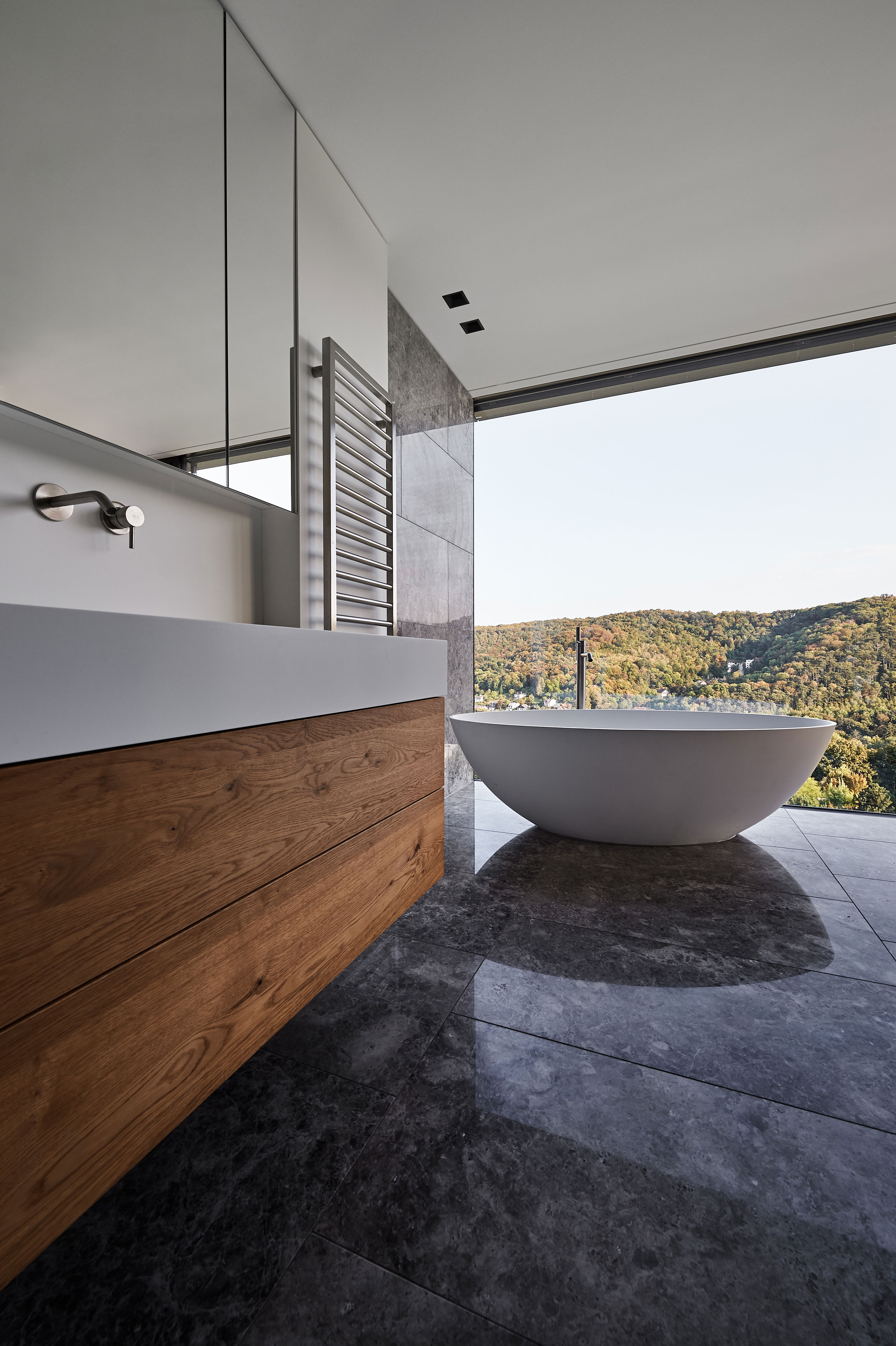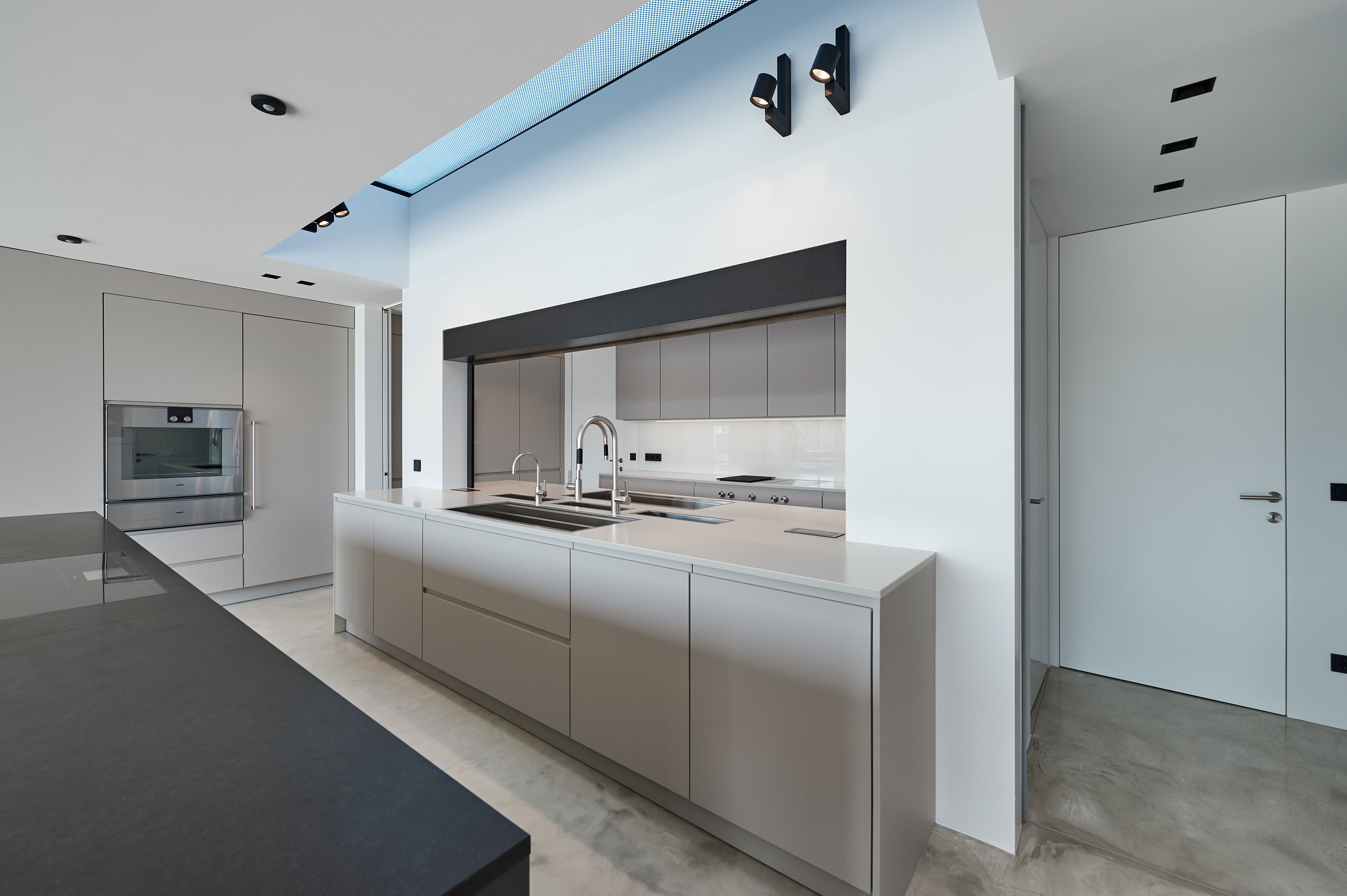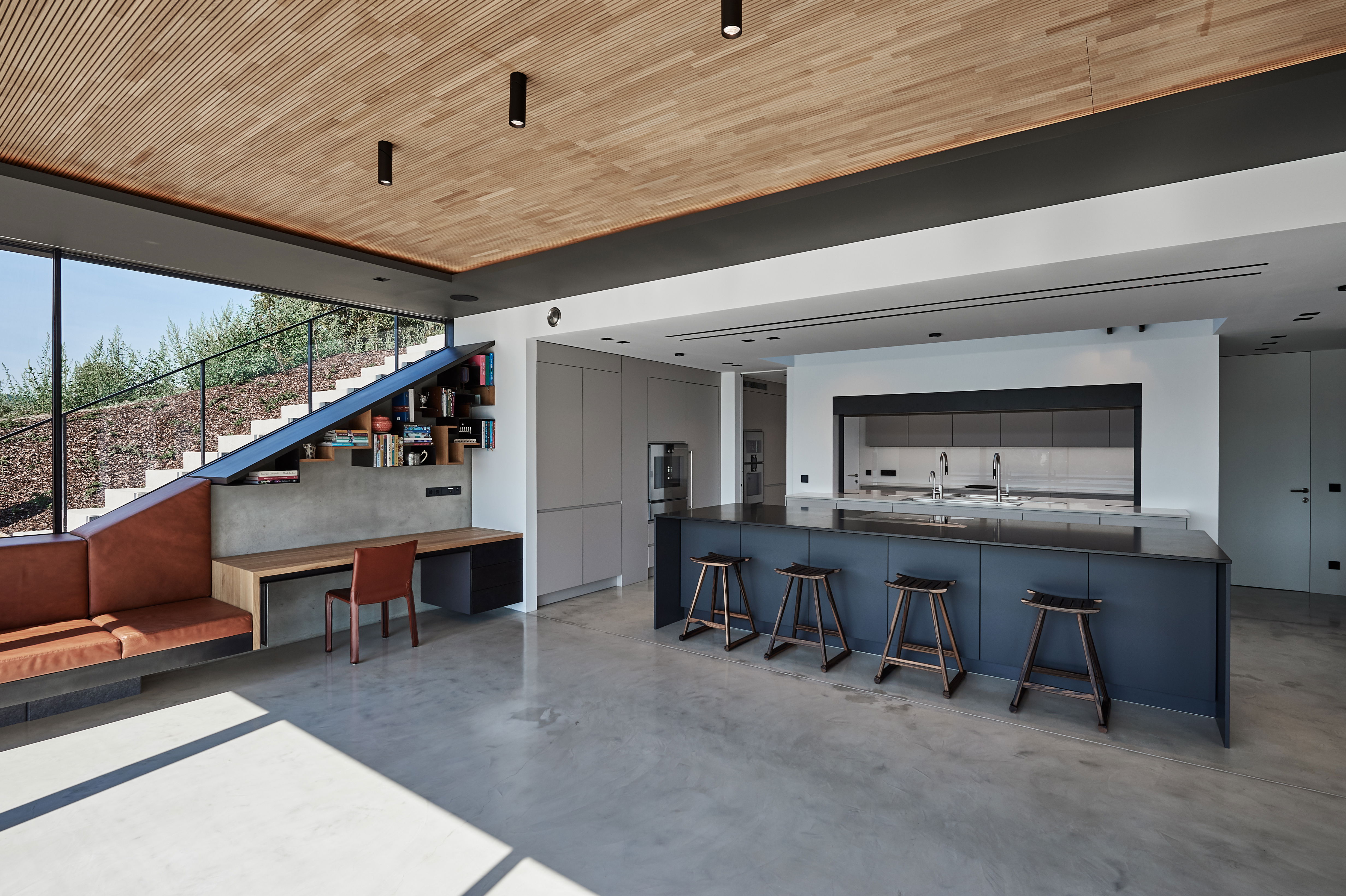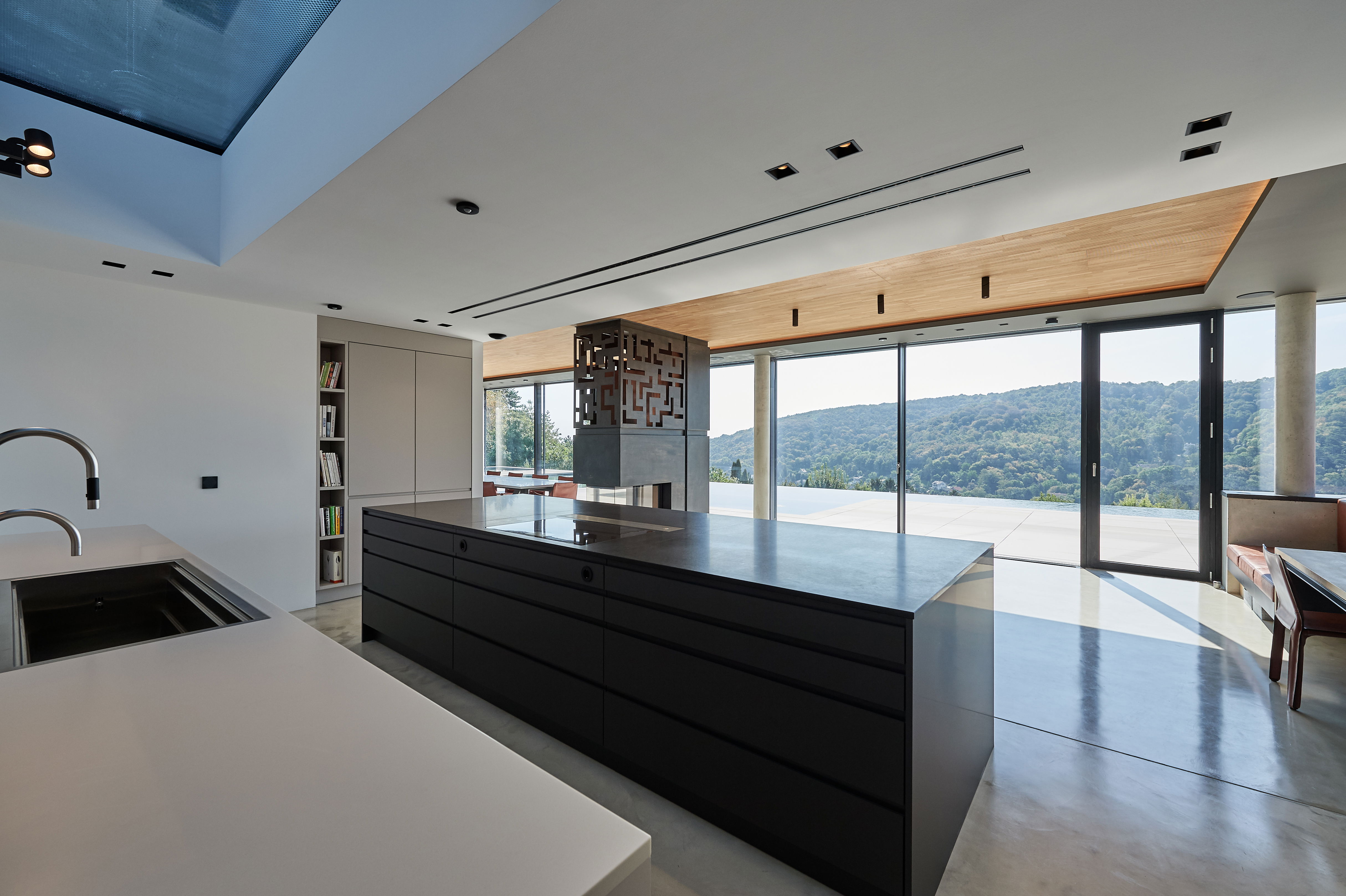 Среди пышных зеленых лугов и густых лесов, с беспрепятственным видом на Дунай, этот впечатляющий частный дом расположен на живописном склоне холма. На стороне здания, обращенной к долине, окна от пола до потолка на всех трех этажах позволяют вглядываться в даль. Внешний фасад антрацитового цвета, выполненный из цинк-титановых панелей, эффектно контрастирует со светлым внутренним дизайном здания. В нем на полах, стенах и потолках чередуются материалы бетона, дерева и камня. Вместе они создают гармоничную и уникальную общую картину - именно микс делает ее! Эта концепция продолжается на кухне жилого дома. Здесь производитель Кьюнон ЛЕЙХТ занимается обучением персонала, который занимается прямолинейным и минималистичным дизайном интерьера. В конце концов, залитом светом поминовения сверженная вера ЛЕЙХТ БОНДИ глубоко серо-тонна визуально наблюдает за рождаемостью кулинарного ансамбля. Центральным элементом является кухонный остров, глянцевая столешница которого имеет практичную функцию защиты от отпечатков пальцев. Сзади она предлагает обширное пространство для хранения, где даже самый амбициозный повар-любитель найдет место для своего оборудования. Таким образом, никакая утварь не мешает минималистской картине. В передней части островной блок с деревянными барными стульями приглашает вас к общению. Как насчет бокала вина местного производства? Ваше здоровье!
