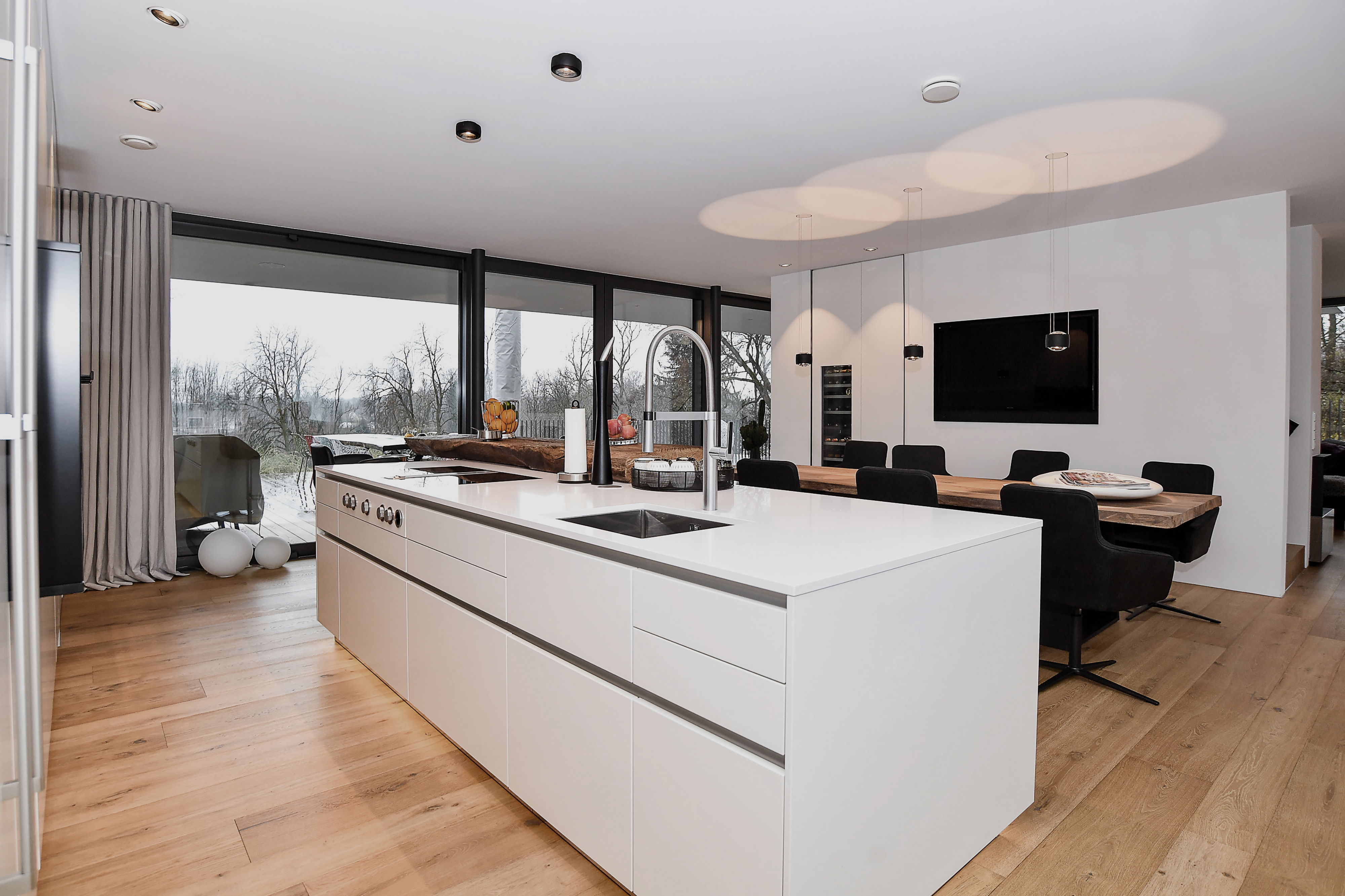 Жизнь в потоке: из роскошной кухни Лейхт в жилое пространство.