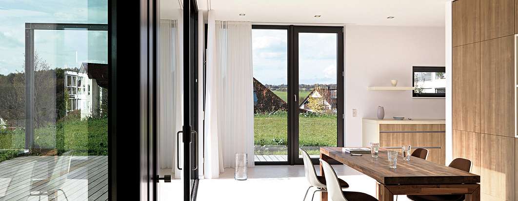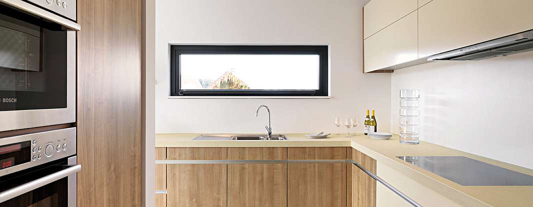 Прямо из гостиной можно выйти на террасу, с которой открывается красивый вид на местность. Кухни LEICHT - это место, где можно круглые сутки отлично проводить время.