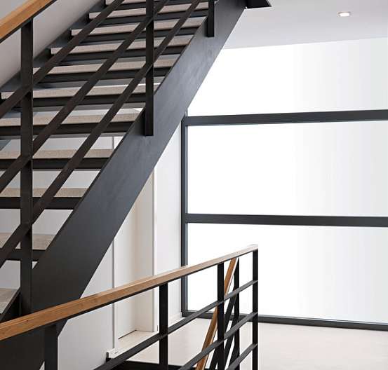 Эта элитная кухня представляет собой трехэтажное сооружение, выстроенное на склоне. Оно наполнено светом, теплыми тонами и натуральными материалами. Между этажами располагается железная лестница, внушающая ощущение надежности и безопасности.