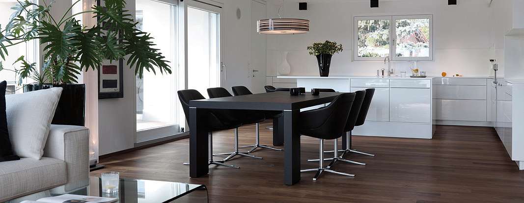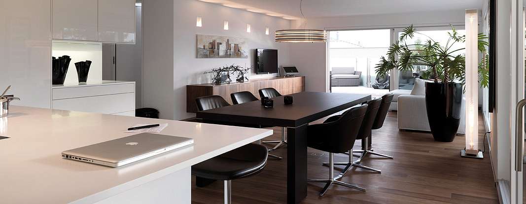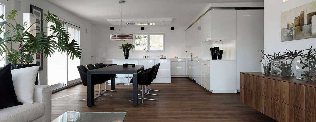 Главными героями немецких кухонь LEICHT являются различные модули, шкафы и фронты. Но все же это архитектурный объект, поэтому он не обходится без основных строительных материалов - дерева и камня, а также грамотного освещения и механики. Над проектами работают архитекторы, подрядчики и сбытовые партнеры. В настоящее время у компании LEICHT есть несколько известных зарубежных проектов, один из которых расположен в городе Вадуц, Лихтенштейн.