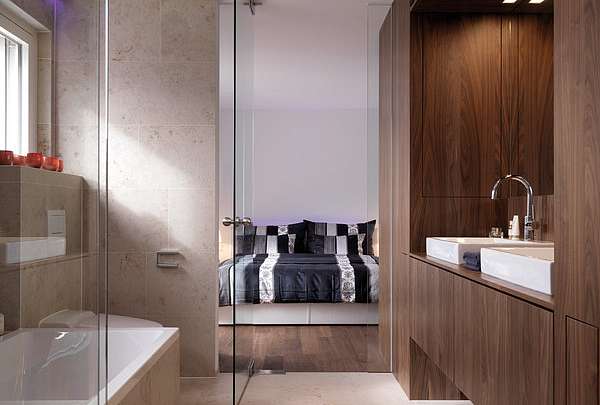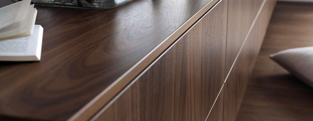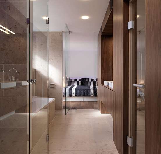 Концепцией этого проекта является триединство - гармоничное сочетание американского грецкого ореха, белого глянцевого лака и черного цвета. Внутренняя отделка, шкафы и фасады были подобраны с помощью кухонной программы.