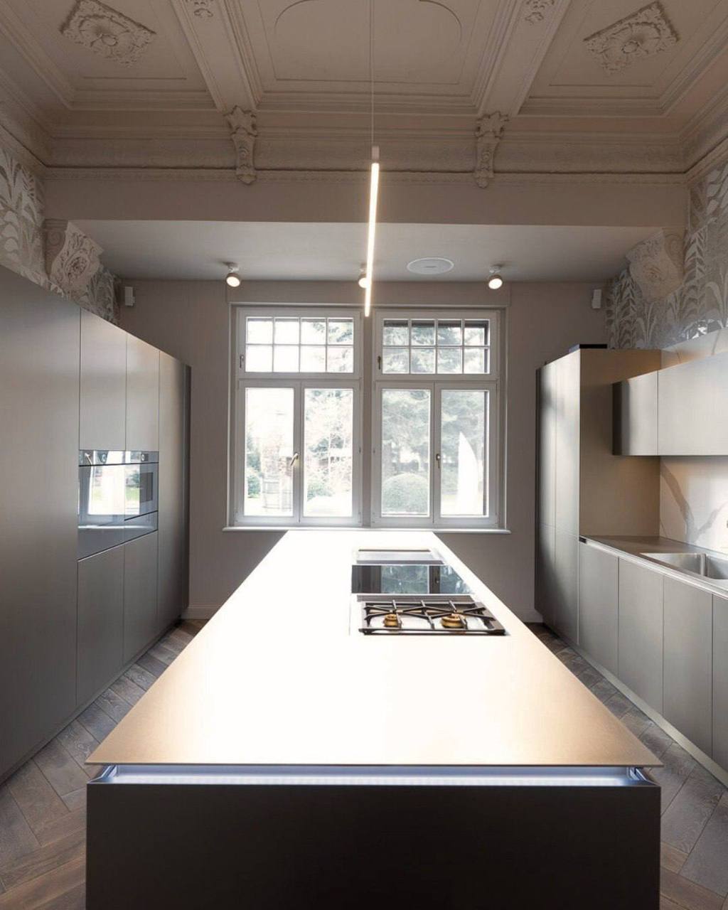 Гармония прошлого и настоящего. Здесь классические золото и мрамор соседствуют с современными фактурами, а новая кухня ALURO от LEICHT деликатно вписана в исторический интерьер. Это умение создавать дизайн вне времени — традиция LEICHT с 1928 года.