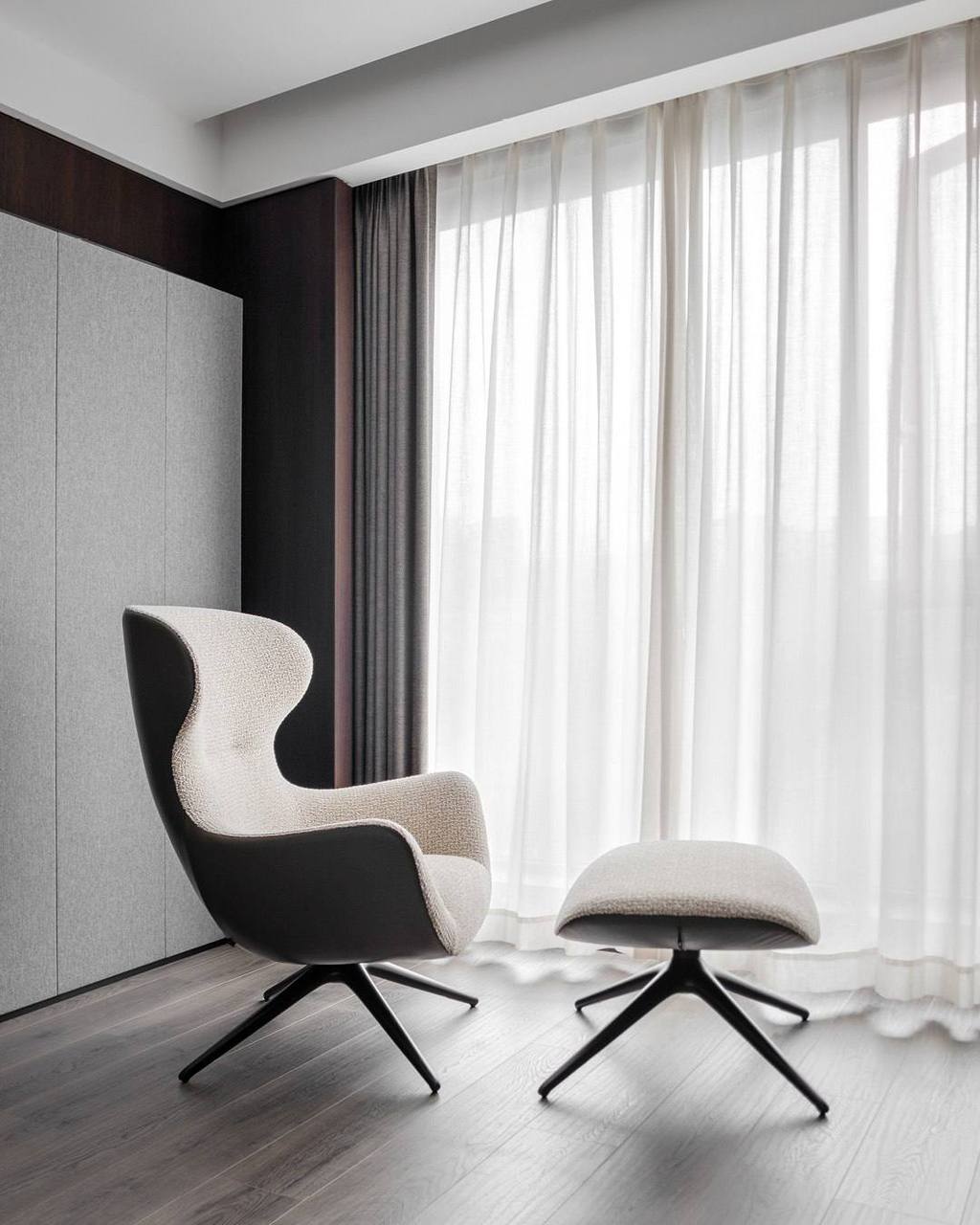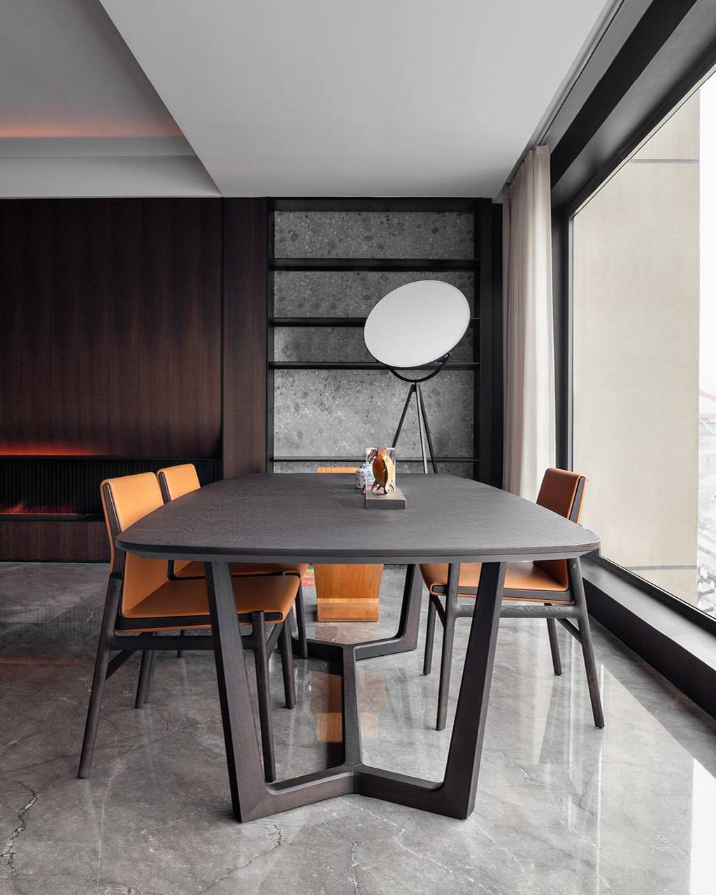 Две обеденные зоны — уютная со столом Concorde и стульями Ipanema, и скульптурная с Kensington из мрамора Sahara Noir в окружении стульев Grace. Спальня в коллекции Gentleman — с выверенными объёмами, продуманными деталями и гармоничными пропорциями — передаёт утончённую атмосферу.