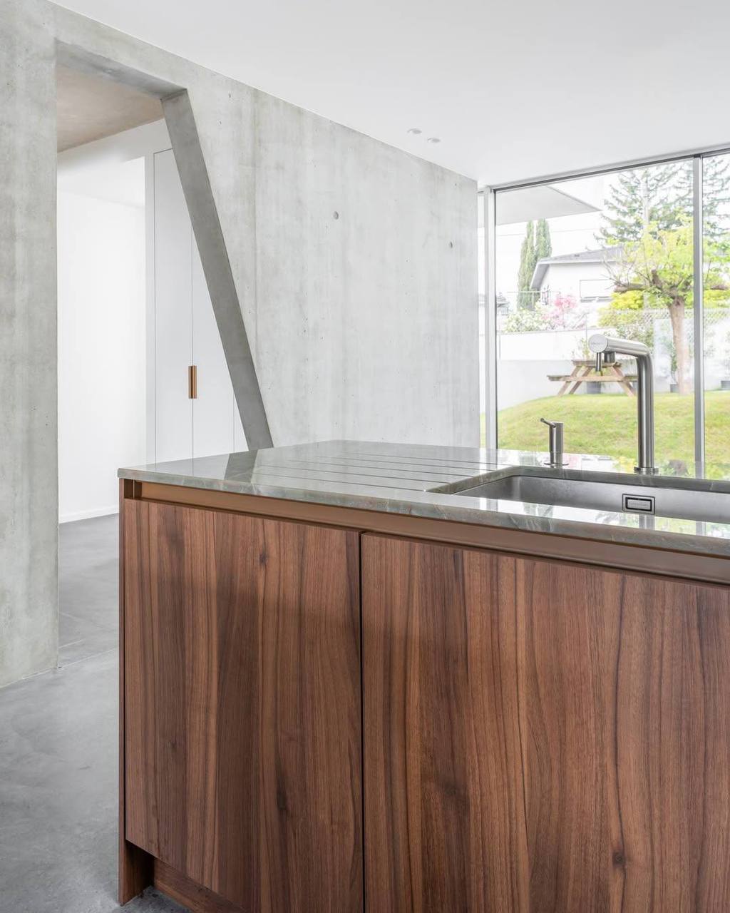 Диалог материалов, в котором каждый ракурс открывает новую перспективу. В этом проекте архитектора Мишеля Гийо кухня LEICHT становится частью жилого пространства, обретая свое продолжение в библиотеке.