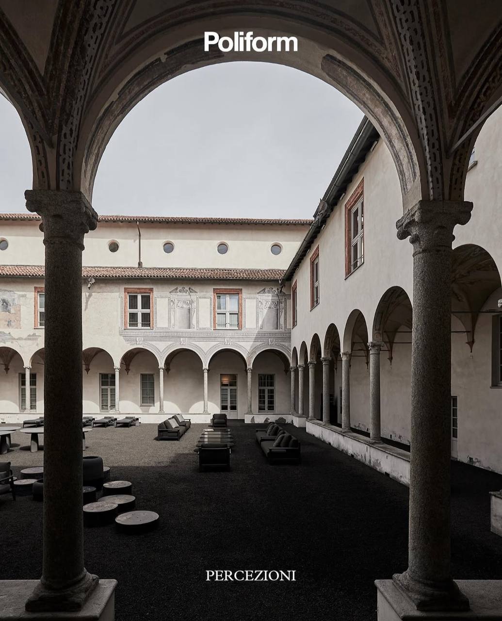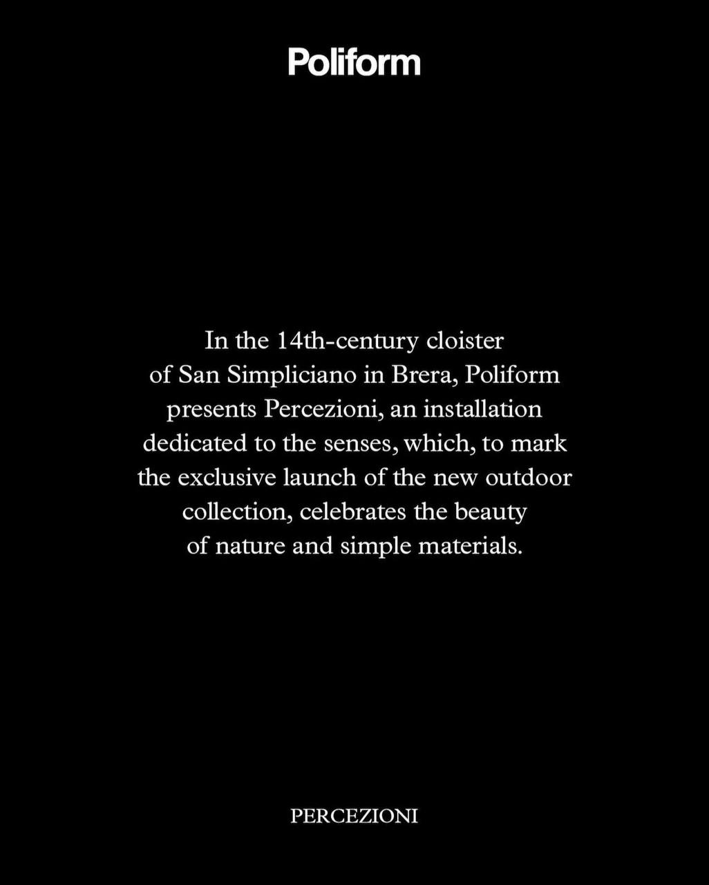 Poliform представила инсталляцию Percezioni и outdoor-коллекцию на Milan Design Week 2023. В арках Сан-Симпличано объединили архитектуру XV века, природные материалы и музыку для полного погружения.