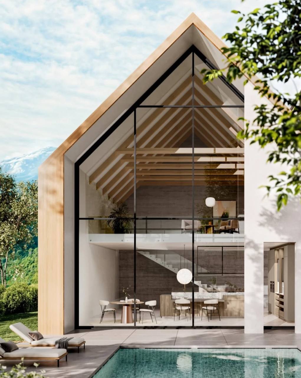 Проект кухни Leicht из Германии в элегантном минималистичном стиле. Большие панорамные окна соединяют кухню с внешним ландшафтом, наполняя её светом и природной атмосферой. Натуральное дерево, стекло и матовый металл придают современный и дорогой вид, а встроенная техника делает кухню практичной.