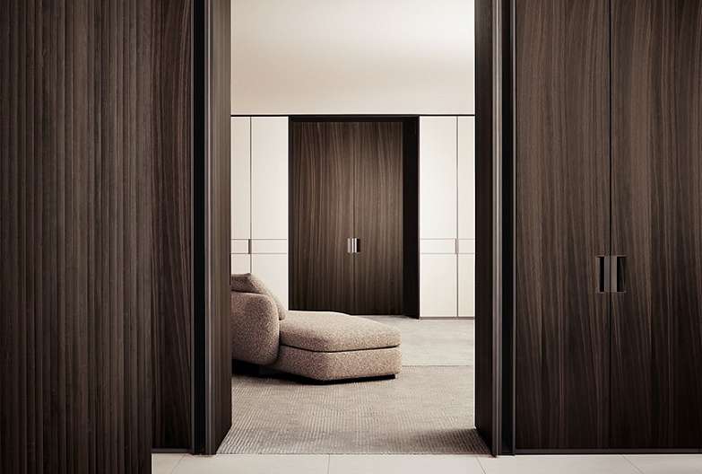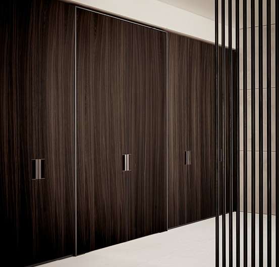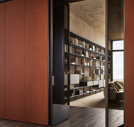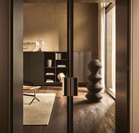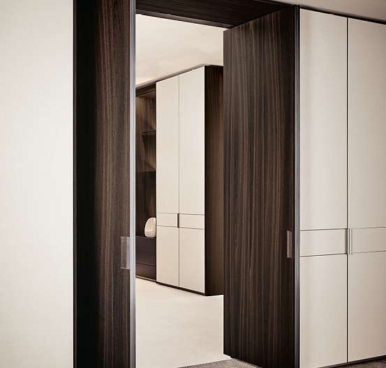 Pivot — это система дверей и перегородок, интегрированная с основными решениями Poliform. Отделки и ручки системы перекликаются с отделкой шкафов из коллекции Night System и дверями из коллекции Kitchen. Благодаря этому система Pivot даёт возможность создавать пространства с идеальной визуальной непрерывностью.