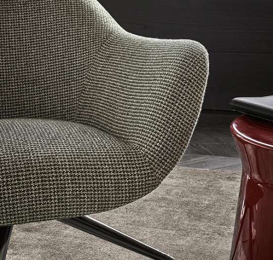 Mad Chair от Марселя Вандерса демонстрирует гармоничный дизайн, структура его основания и сиденья создают четкое ощущение идеального дизайна благодаря сочетанию материалов и форм. Возможны варианты с одним подлокотником, а также два вида опор — диагональные деревянные ножки или крестовина. Габаритные размеры 81×77хН70 см.