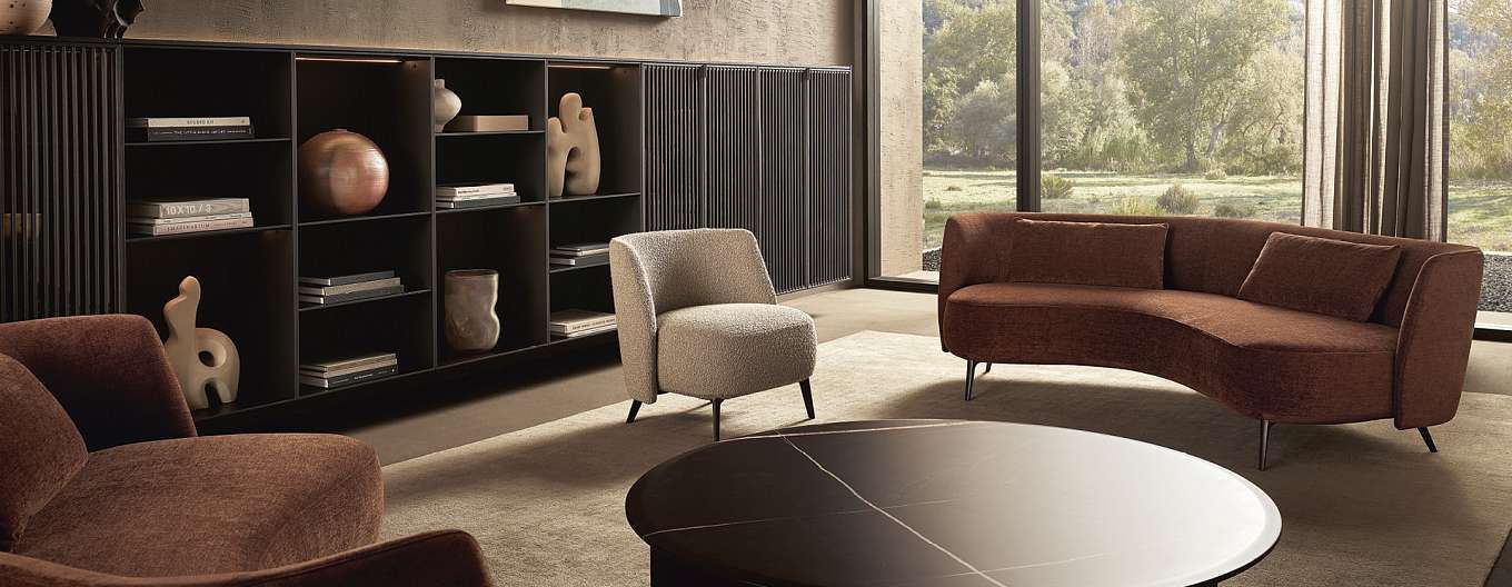 Sunday от Флавиано Капротти — это коллекция компактных мягких диванов и кресел с обволакивающим эффектом, созданных для душевного общения в течение дня, полностью посвященного отдыху. Изогнутые и асимметричные диваны предназначены для размещения в центре комнаты. Разная глубина сиденья обеспечивает индивидуальное ощущение комфорта.