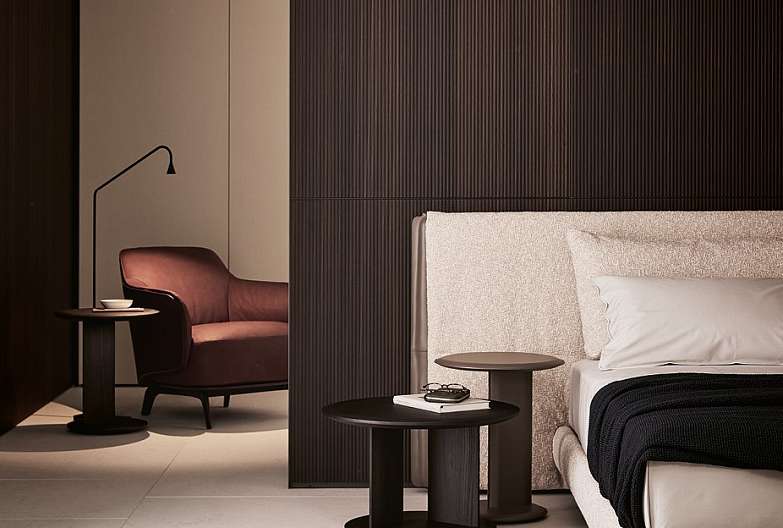 Yume — это кровать с мягкой обивкой, которая благодаря мягкому изголовью переосмысливает классическую эстетику с учетом как визуальной невесомости, так и легкости использованных материалов. Эта модель, созданная Жаном-Мари Массо, сочетает в себе неподвластную времени элегантность и роскошь таких деталей, как кожаные вставки, вдохновленные высокой модой.