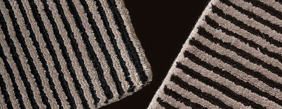 Cannelé — это двухцветный ковер в полоску. Линии сформированы сочетанием двух видов отделки. Для линий черного цвета используется пряжа букле, а для линий жемчужного цвета — ворс ручной резки. Основа ковра из хлопка, ворс из гималайской шерсти и бамбукового шелка, пряжа букле из гималайской шерсти.