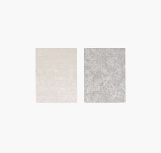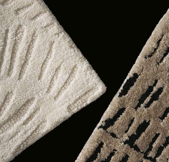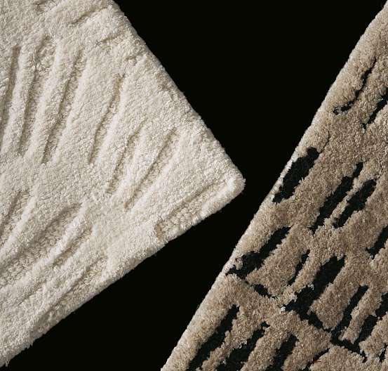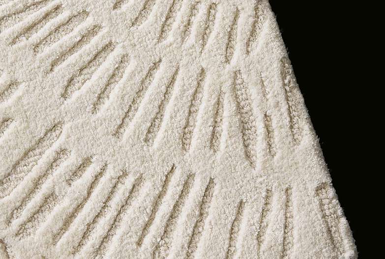 Ковер Trace из смеси шерсти и бамбукового шелка изготовлен на жаккардовом ткацком станке. Особый дизайн, доступный в двух цветах, родился в результате чередования букле основы и чесаного флиса.