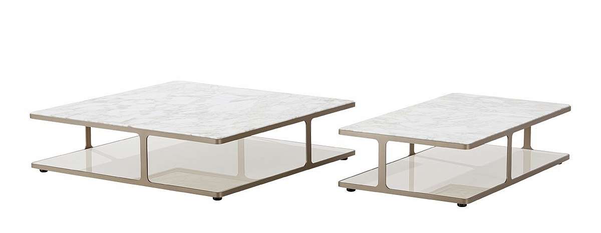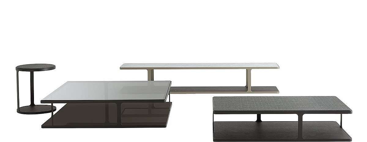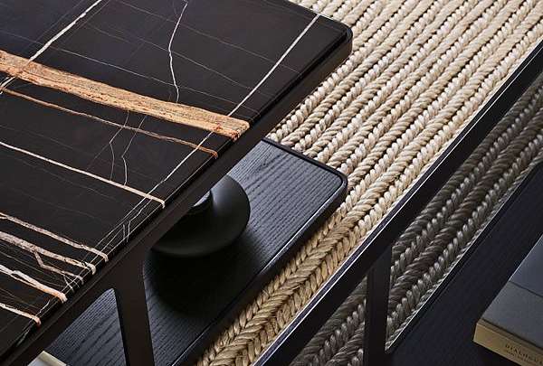 Состоящий из двух находящихся друг над другом столешниц, размещенных на металлическом каркасе, Creek представляет собой коллекцию свободно сочетающихся журнальных столиков и мебели. Цвета и отделки предметов могут быть скомбинированы по желанию. Столешницы из дерева, мрамора или лакированные. Металлический каркас — матовые отделки: цвет «шампань» или «коричневый никель».