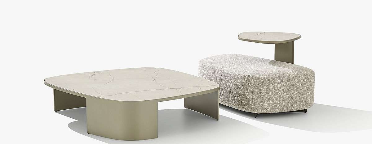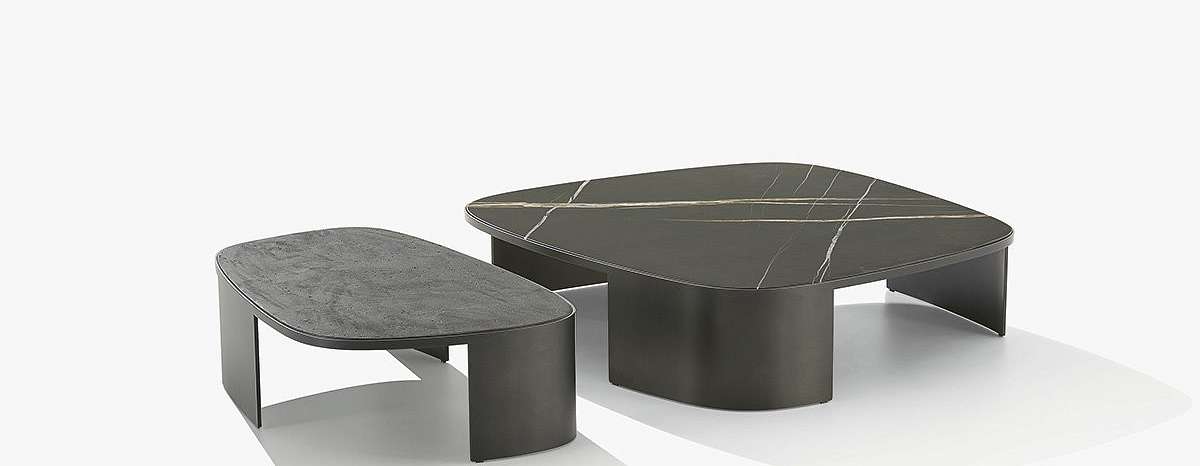 Кофейные столики Koishi вдохновлены мягкими линиями и органическими формами. Само название — Koishi, что в переводе с японского означает «галька» — намекает на естественность, которая также выражается в выборе натуральных материалов, таких как мрамор, камень и дерево. Металлическая структура скульптурная, но минималистичная; дерево, стекло и мрамор — материалы, доступные для столешницы.