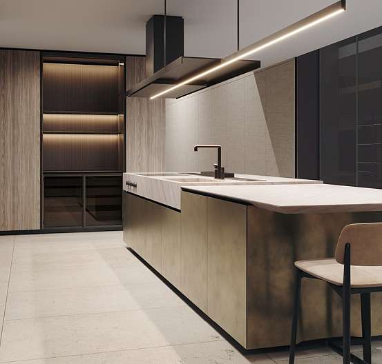 Artex Pro-это кухонная система с современной и привлекательной эстетикой. Среди новинок-коническая столешница, которая становится закуской для быстрого потребления, и введение твердого ископаемого вяза, очень ценного старинного дерева, которое подтверждает Artex Pro как кухню самых эксклюзивных помещений. Кроме того, Artex Pro обладает функциональной формой заливной формы и бесшовной интеграцией с архитектурной системой, в частности с поворотными дверями.
