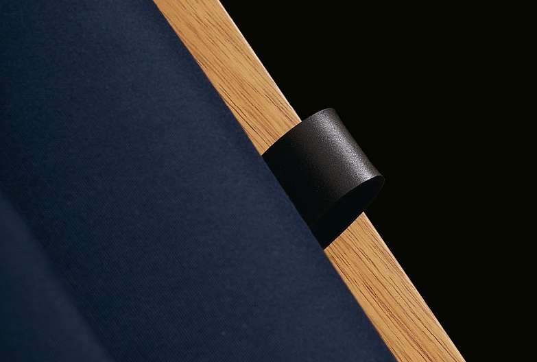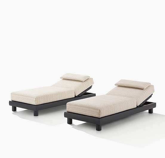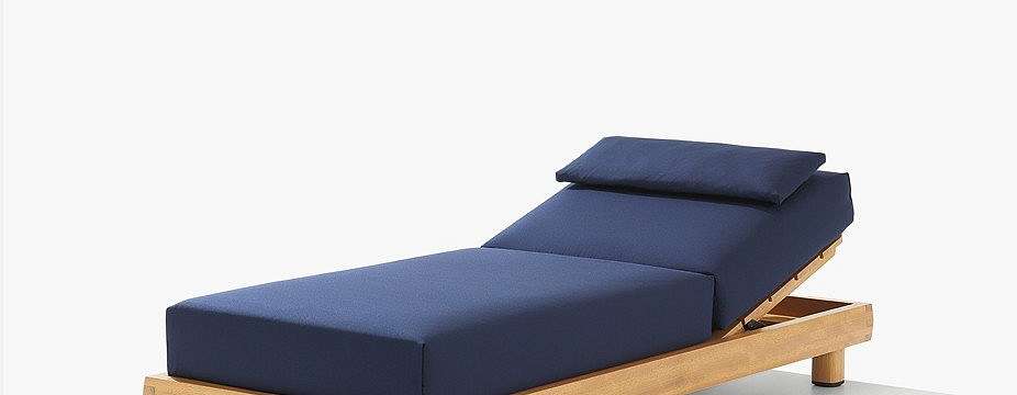 Завершает коллекцию Ketch, разработанную Жан-Мари Массо и вдохновленную миром катания на лодках, шезлонг на открытом воздухе. Как и диваны и кресла, шезлонг также характеризуется прочной и простой структурой iroko, которая поддерживает мягкую подушку. Откидывающаяся спинка, сделанная еще более удобной подушкой для подголовника, скрывает функциональное отделение для хранения полотенец и аксессуаров.