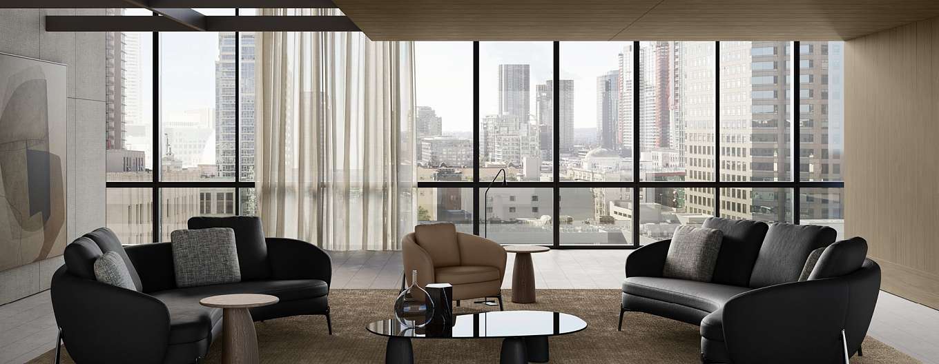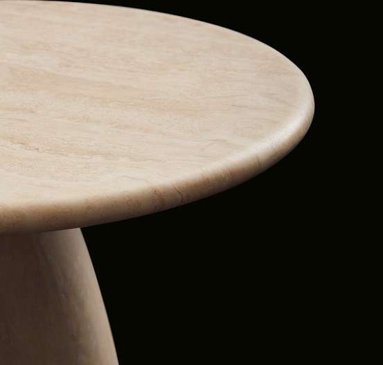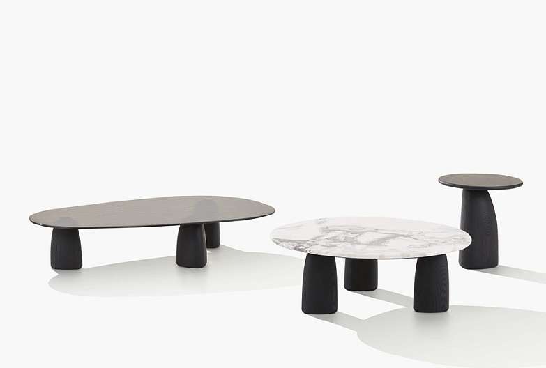 Столик Strata, изначально созданный в качестве элемента уличной мебели, представлен в версии для помещений. Модель дополнена ножками из черного вяза и столешницами из мрамора и стекла. Также есть вариант со скульптурным эффектом, полностью выполненный из травертина. Уникальность столиков Strata, доступных в разных размерах и в разной высоте, с круглыми или стандартными столешницами, особенно проявляется в сочетании с диванами коллекции.