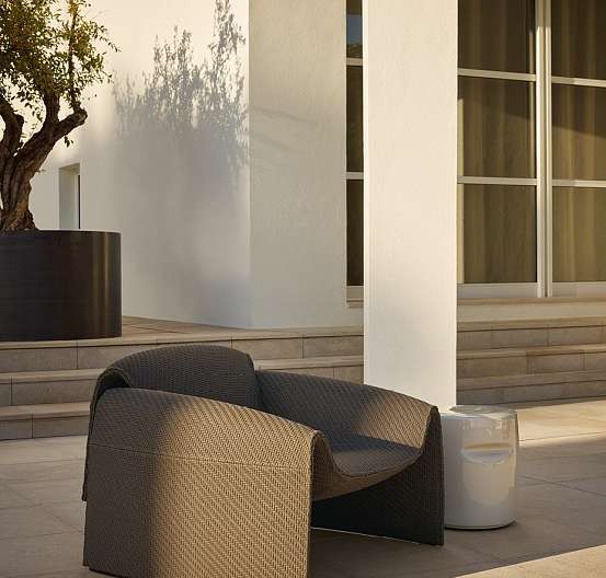 Культовое кресло Le Club в наружной версии. Линии, изогнутые и мягкие, а также очень высокий уровень комфорта остаются неизменными, в то время как Evolve-это материал обивки, ткань, изготовленная путем переплетения плоских веревок из полипропилена, обработанная водоотталкивающей жидкостью, что делает ее идеальной для использования на открытом воздухе. Всегда отличное качество исполнения, которое требует сложной и изысканной техники для покрытия.