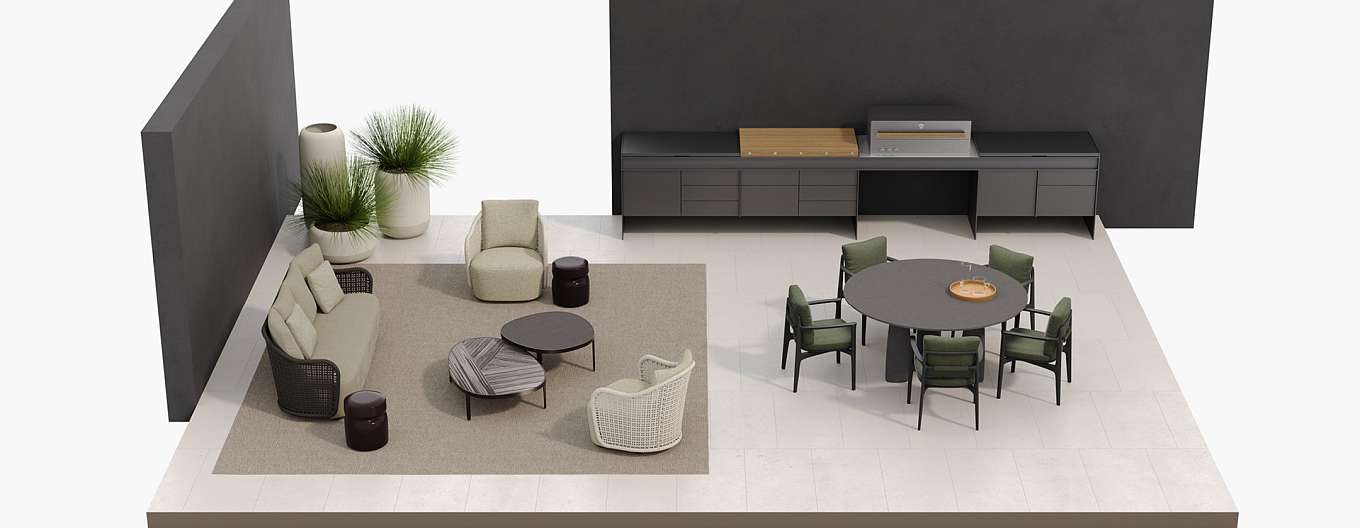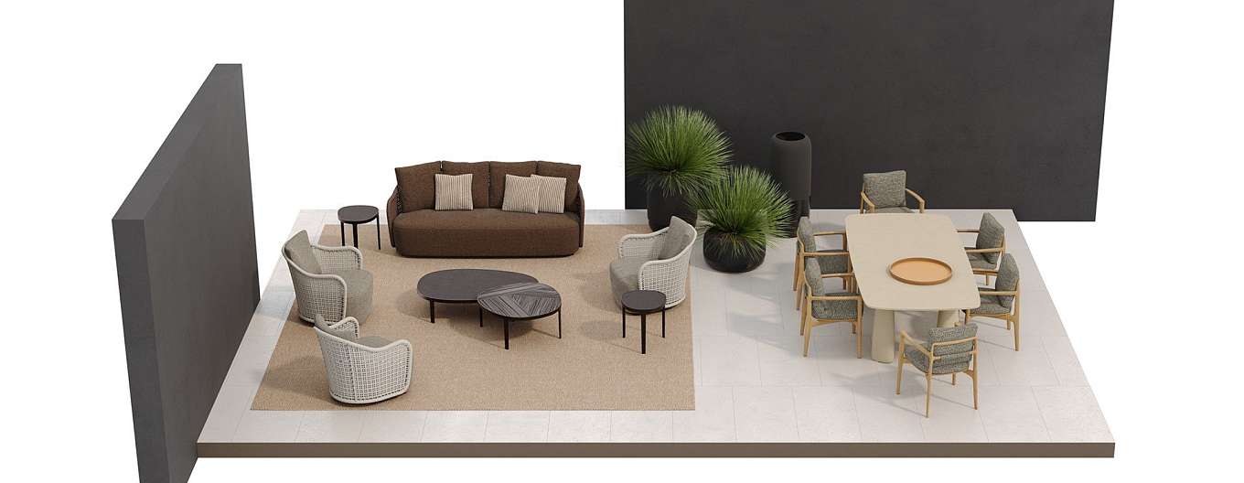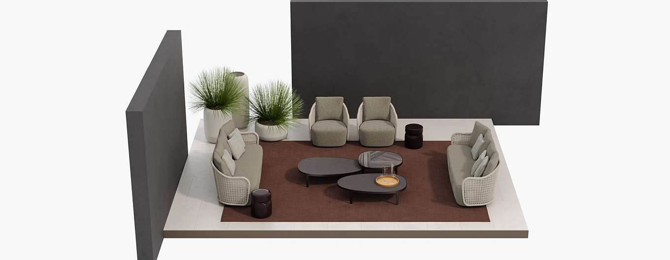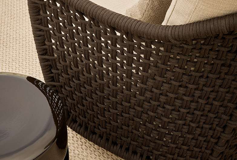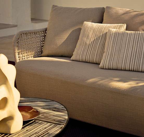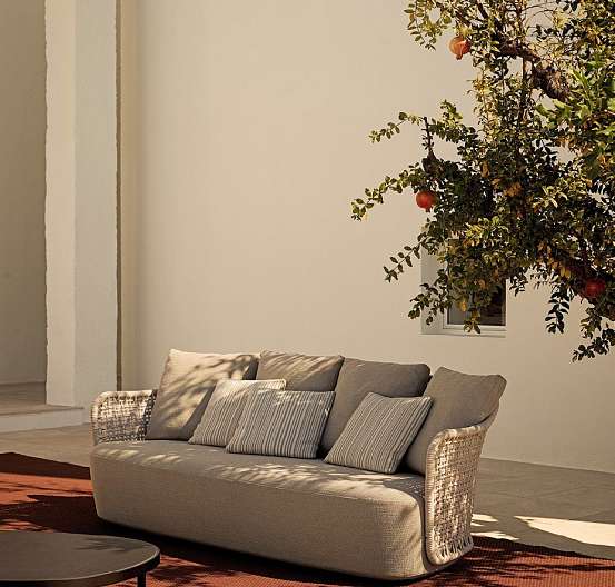 Марсель Вандерс переосмысливает плавные и изогнутые линии культовой коллекции Mad, адаптируя их к образу жизни на открытом воздухе. В диване Mad out спинка из веревки ручной работы, которая позволяет воздуху и свету фильтровать, делает его идеальным для использования на открытом воздухе, сохраняя при этом стиль и прочность внутреннего дивана.