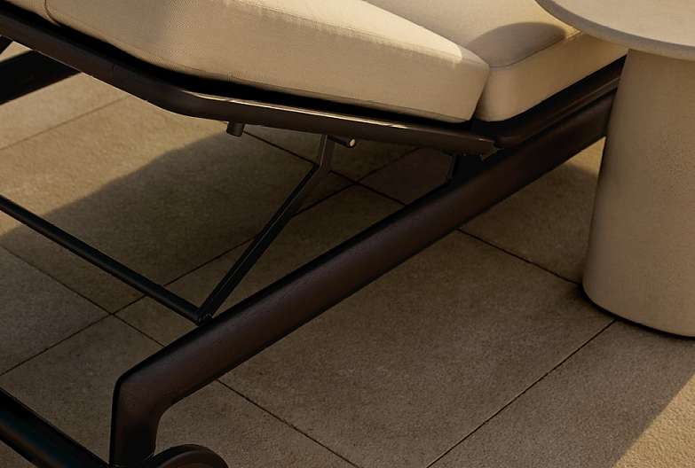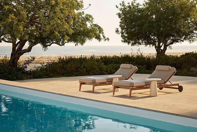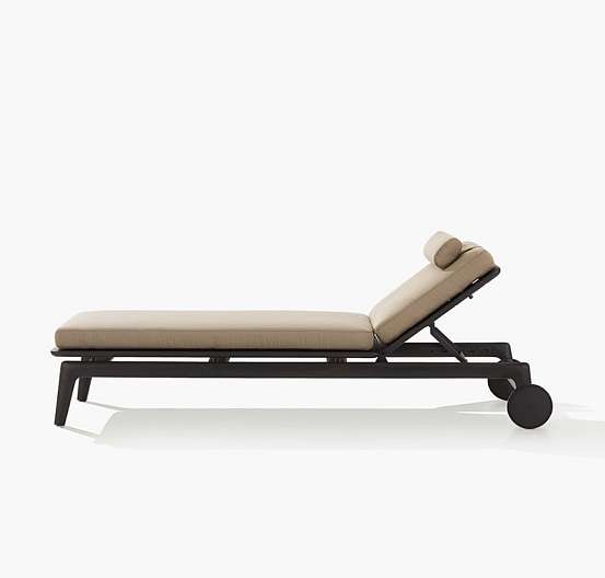 Завершает коллекцию Magnolia Эммануэля Галлина шезлонг, сочетающий в себе красоту форм невидимую технологию откидывающейся спинки, служащую комфорту. Изготовлен из дерева ироко, он оснащен удобной и ненавязчивой подушкой и колесами для легкой обработки.