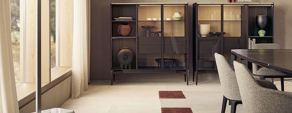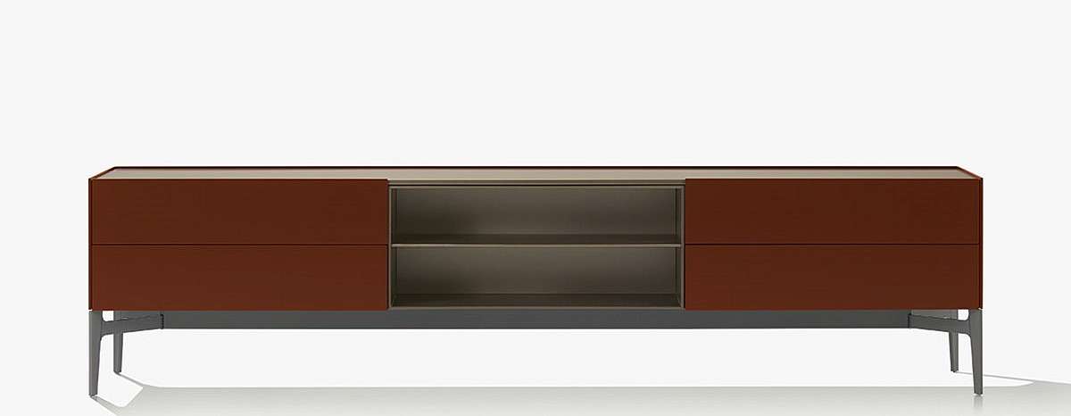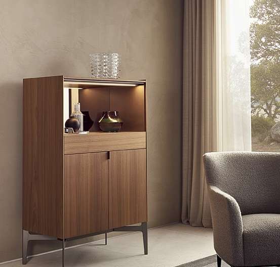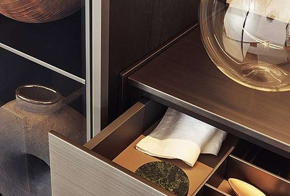 Коллекция тумб Code дополняет одноименную открытую систему корпусных модулей, доступных в различных конфигурациях: с открытыми секциями, ящиками, распашными или откидными дверями. Универсальность системы заключается в разнообразии отделки, которая придает каждой тумбе уникальный стиль, от классического до ультрасовременного. Внутренняя комплектация включает в себя полки и ящики, а также множество дополнительных аксессуаров (например, подставки для столовых приборов, держатели для бумаги или ручек), которые можно выбрать в зависимости от того, используется ли элемент в обеденной зоне или в кабинете. Высокие тумбы можно дополнить светодиодной подсветкой.