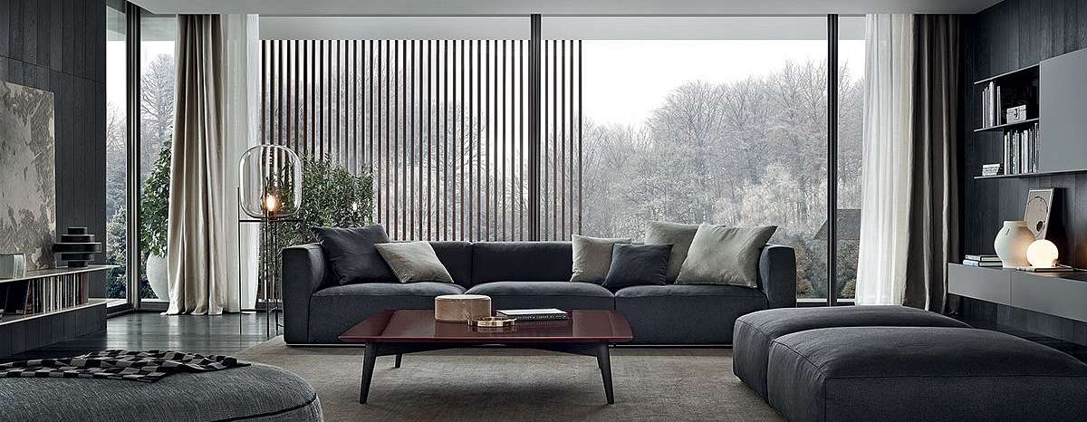 Лаконичный дизайн дивана Shangai Карло Коломбо позволяет использовать его в самых различных интерьерах. Полностью съемные чехлы из ткани, несъемные из кожи. Линейный цоколь может быть выполнен в глянцевом алюминии или коричневом никеле.