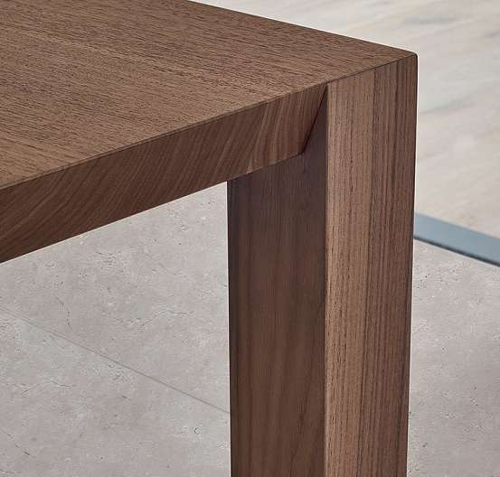 Стол с поразительно простым силуэтом, который интерпретирует самую базовую геометрическую форму. Смелые сочетания простых и легких форм и ощущение прочности массивного деревянного материала является отличительной особенностью данной модели.