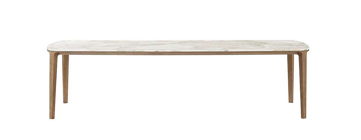 Henry - это обеденный стол большого размера, предназначенный для проведения праздничных мероприятий. Элегантная отделка конструкции из массива дерева, отличающаяся изысканным качеством изготовления, сочетается с прямоугольной столешницей из дерева, мрамора или стекла с закругленными краями.