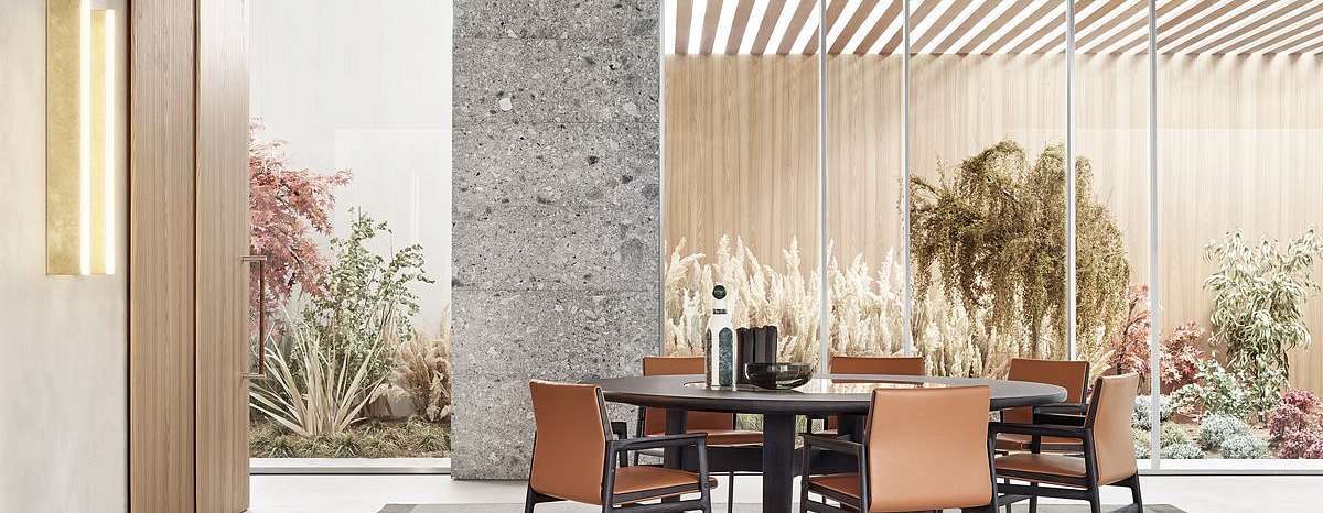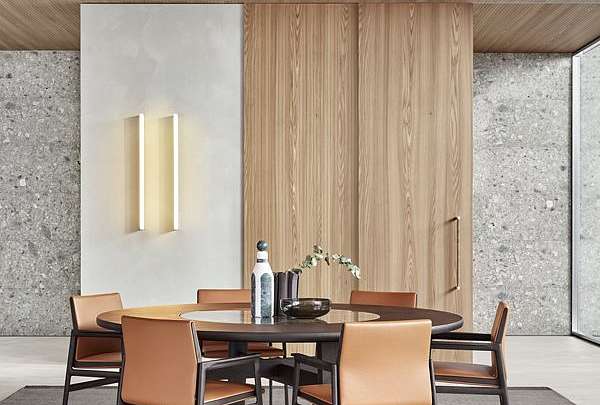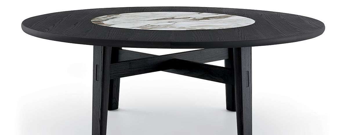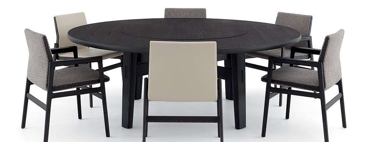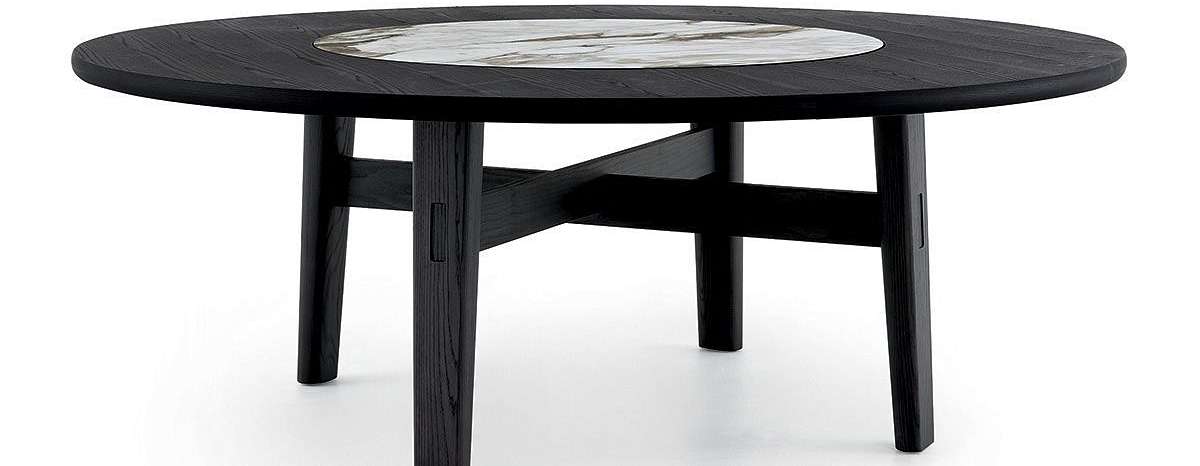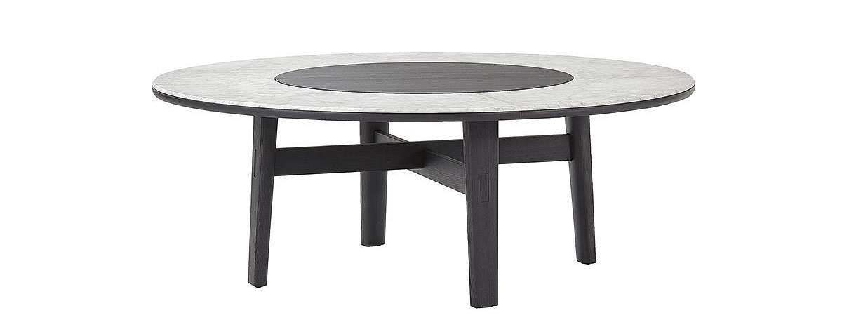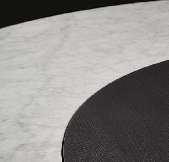 Разработана новая отделка для обеденного стола коллекции Home Hotel Жана-Мари Массо. Мраморная поверхность интегрирована в толщину дерева, это обработка высокого класса мастерства, которая сочетает в себе эстетику и новейшие технологии. Предусмотрена возможность центральную часть круглых столов большого диаметра делать вращающейся.