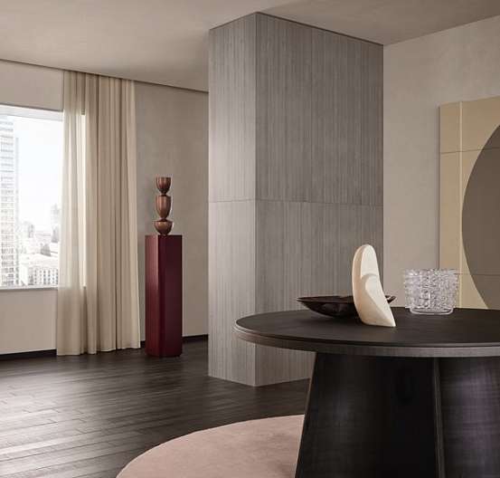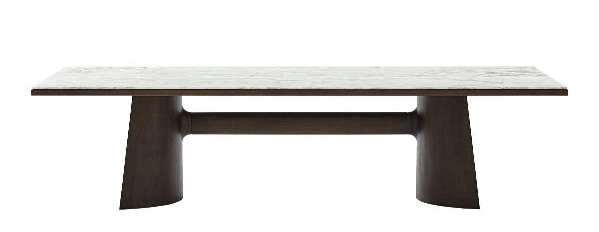 Стол Kensington, дизайн Жана-Мари Массо, — это прежде всего объект, который вызывает сильные эмоции. Впечатляющий эффектными пропорциями, строгий и визуально скульптурный благодаря узнаваемой структуре опор литейного производства, и в то же время комфортный стол для больших приемов. Разнообразные материалы для верхней поверхности: дерево, стекло или мрамор.