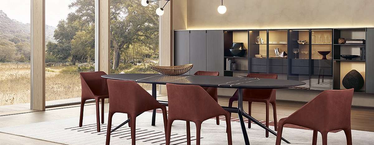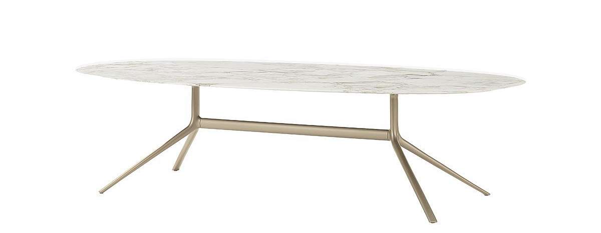 Новая классика для современной столовой, стол Mondrian, по-новому интерпретирует легкий и элегантный дизайн одноименной коллекции диванов и журнальных столиков. Тонкая, изящная металлическая рама может быть выполнена в темных или светлых оттенках металла. В то же время для овальной, круглой или прямоугольной столешницы различных размеров были выбраны изысканные варианты отделки, такие как стекло и мрамор.