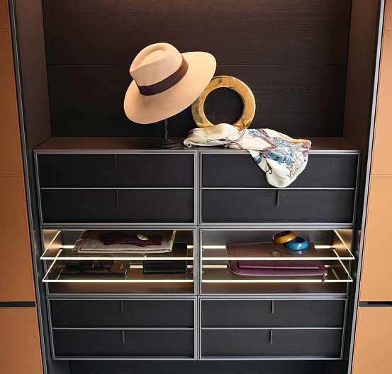 Senzafine-это больше, чем шкаф, это система, которая постоянно обогащается новыми эстетическими и функциональными решениями. Модульная конструкция предназначена для создания индивидуальных решений, идеально подходящих для любой архитектуры. Каркасные боковины, также из стекла, спинки, крышки,опоры и полки составляют структуру, к которой добавляются различные типы дверных проемов для распашных, раздвижных, копланарных или наружных ящиков. Неограниченная свобода для отделки, от облагороженных до самых ценных отделки, таких как стекло, которое применяется к боковым стенкам, спинкам и дверям, создает эксклюзивные шкафы teca. Комоды, оборудование и аксессуары дополняют развитое предложение, способное адаптироваться к любому пространству.